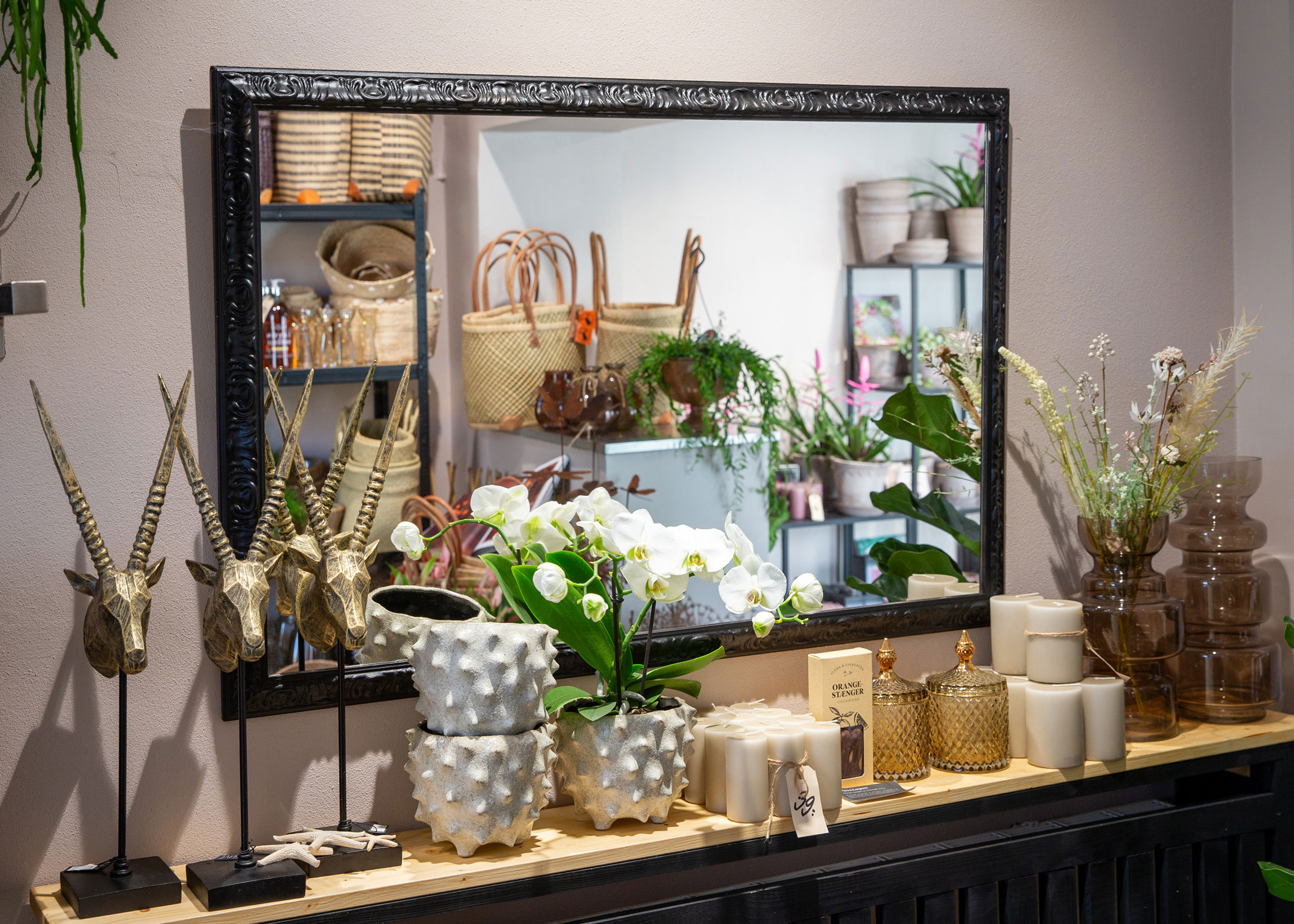 Som kunde i i butikken møder du et bredt sortiment af friske snitvarer leveret direkte fra Holland eller via KGT 6 gange i ugen. Derudover finder du et spændende udvalg af de nyeste trends indenfor brugskunst, samt et stort udvalg af spændende planter som orkideér og sukkulenter.